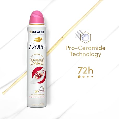 Sản phẩm Dove Advanced Care Go Fresh Pomegranate & Lemon Verbena Scent Women's Antiperspirant Deodorant Spray for 72 hour protection against sweat and odour with Pro-Ceramide technology 200 ml đang được bán với giá ưu đãi là $4.8178 tại nước Anh.