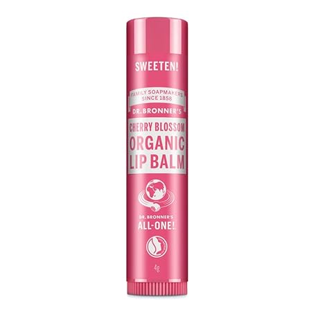 Dr Bronner's Cherry Blossom Lip Balm, Made with Organic Oils and No Synthetic Ingredients, Used for Lips, Dry Hands, Cuticles and Chapped Cheeks, Certified Fair Trade, 4g Bar