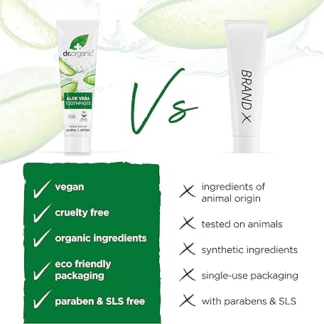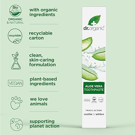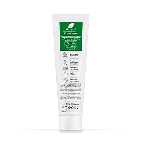 Thông tin sản phẩm Dr Organic Aloe Vera Toothpaste, Whitening, Natural, Natural, Vegan, Cruelty-Free, Paraben & SLS-Free, Organic, 100ml, Packaging may vary