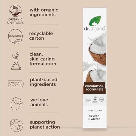 Thông tin sản phẩm Dr Organic Coconut Oil Toothpaste, Whitening, Natural, Mens, Womens, Natural, Vegan, Cruelty-Free, Paraben & SLS-Free, Organic, 100ml, Packaging May Vary (Pack of 2)