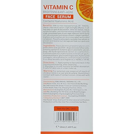 Thông tin sản phẩm dr rashel Vitamin C Face Serum - Hyaluronic Acid, Brightening, Anti Wrinkle and Anti Aging, Dark Circle, Fine Lines and Sun damage – Restore&Boost Face serum- 1.69 oz