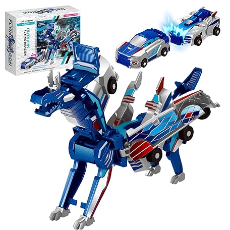 Dragon Transformers Toys, Robocrash Magnetic Transforming Car Toy, 2 in 1 Collision Automatic Deformation Dragon Toy Cars Gifts for Christmas Birthday