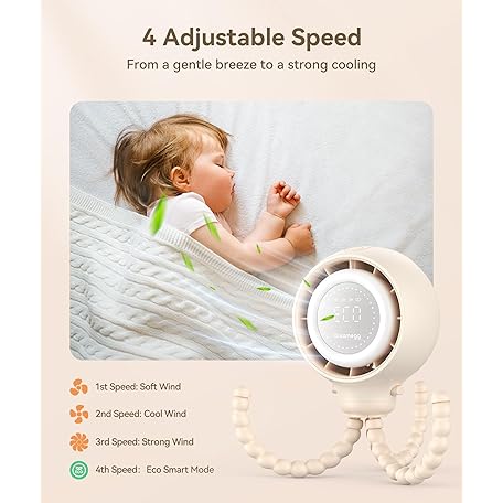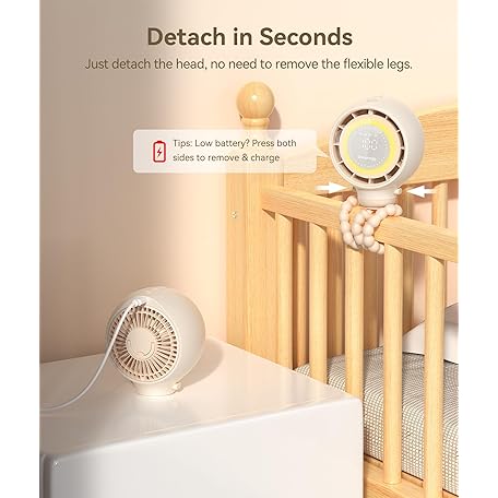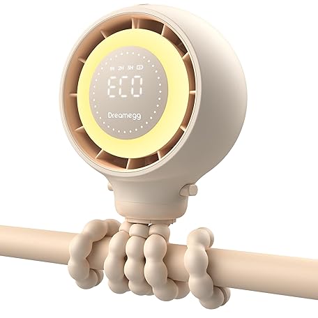 Thông tin sản phẩm Dreamegg Portable Baby Pram Fan with Smart Display, 4000mAh|Child-Safe Hidden Blade & Lock|4 Speeds|360° Adjustable|Detachable|Night Light|Low Power Warning|For Stroller, Car Seat, Nursery & Bedroom