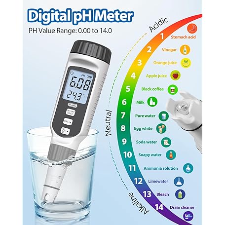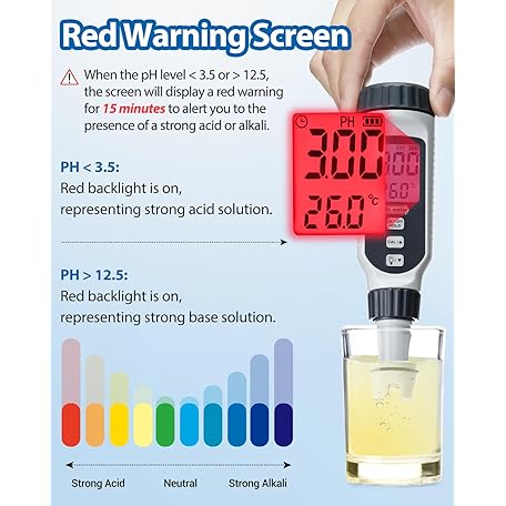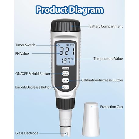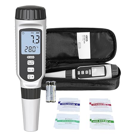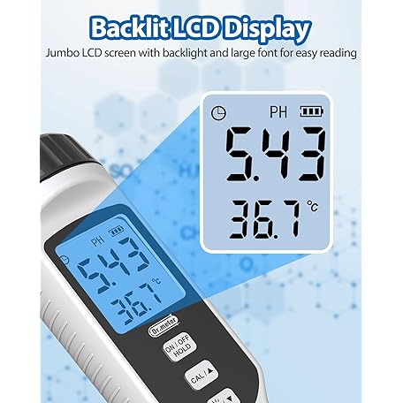 Thông tin sản phẩm Dr.meter PH Meter, PH Tester for Water 0.01 Resolution High Accuracy PH Meter for Water 0-14pH Range Digital PH Tester with Data Hold and Backlit Two-Color LCD for Hydroponics, Garden, Pool, Aquarium