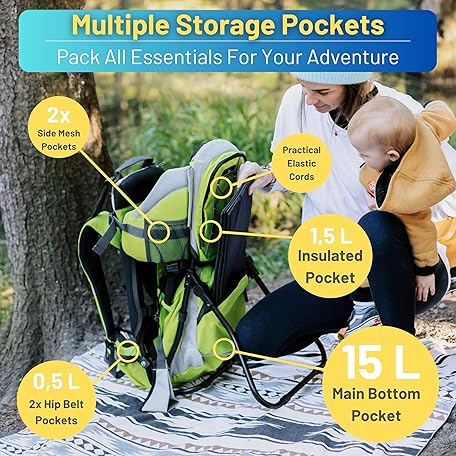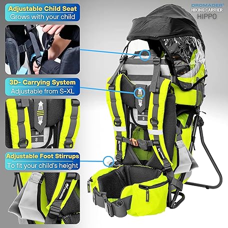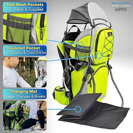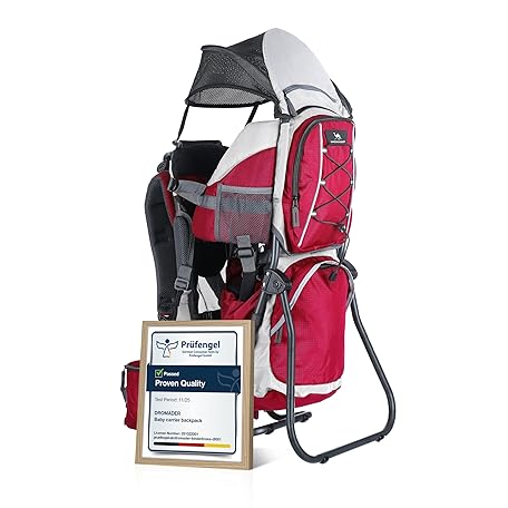 Thông tin sản phẩm DROMADER Baby Carrier Backpack - Toddler Hiking Backpack with Sun Canopy, Rain Cover, Insulated Pouch, Changing Mat & One-Hand Foldable Frame - Red
