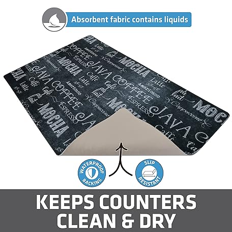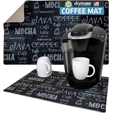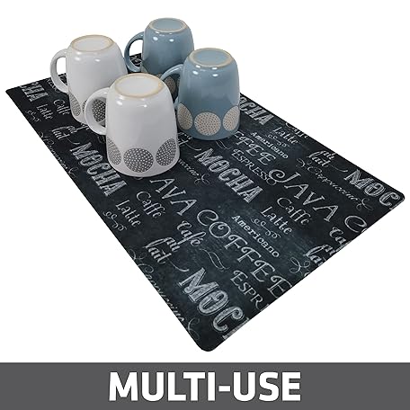 Thông tin sản phẩm Drymate Coffee Maker Mat, (Coffee Station Bar Accessory) Protects Kitchen Countertops from Spills, Stains & Scratches - Absorbent/Waterproof/Machine Washable (USA Made) (12” x 20”) (Java Chalkboard)
