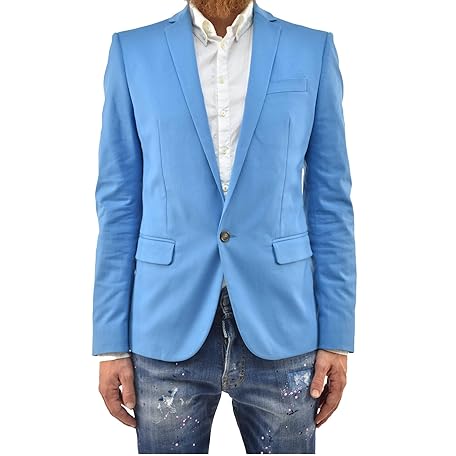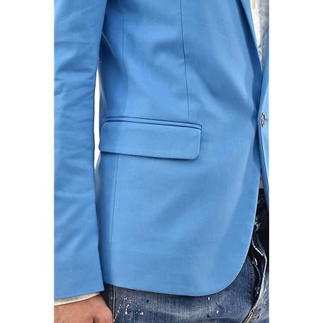 DSQUARED2 Blazer Jacket Elegant Man Light Blue Cotton One Button Lined Size IT46