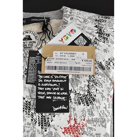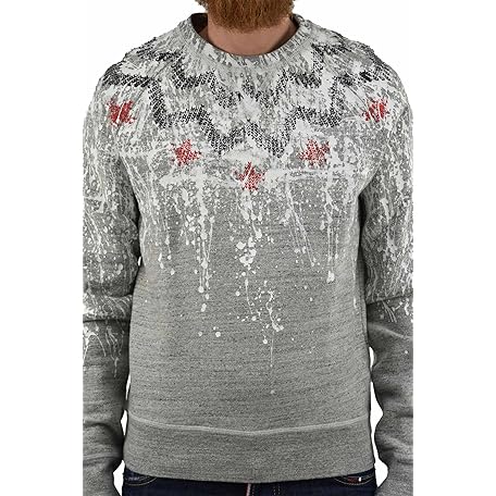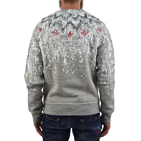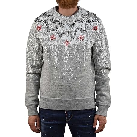 DSQUARED2 Grey Sweatshirt Men Cotton Crew Neck Crack Print Paint Spots Size S and M