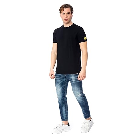 Thông tin sản phẩm DSQUARED2 Men's Black Casual T-Shirt with Logo Patch Icon on the Sleeve, black, S