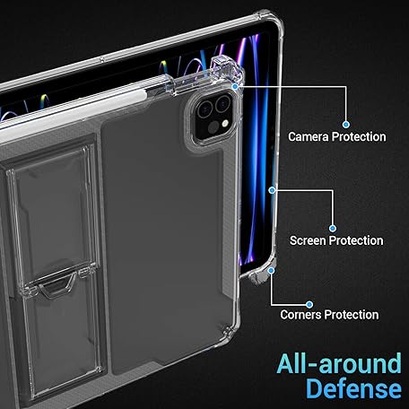 Thông tin sản phẩm Dteck Clear Case for iPad Air 13 inch M2 2024,iPad Pro 12.9 6th/5th/4th/3rd Generation Case,Thin Slim Lightweight Anti-Yellowing Transparent Bumper Shock Drop Protection Stand Cover with Pencil Holder