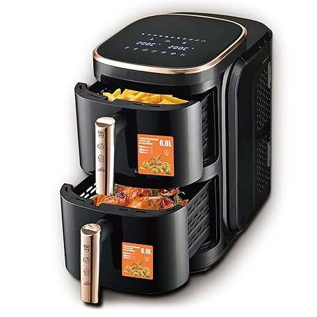 Dual Basket Air Fryer, Large Family Size 12L Capacity, 2 Cooking Levels, Space Saving Vertical Design, for Healthy Frying, Baking, Roasting