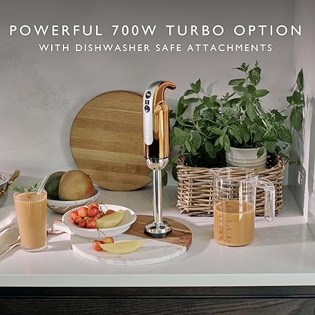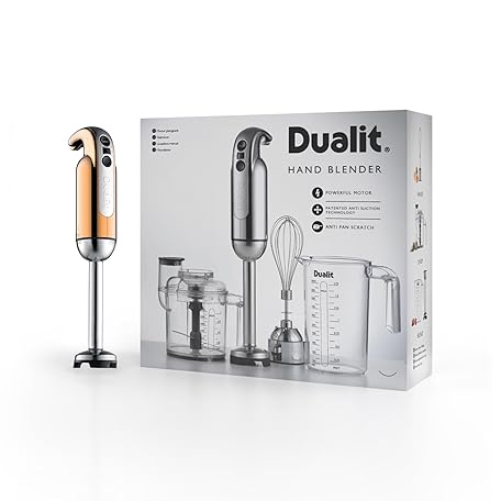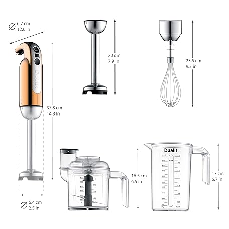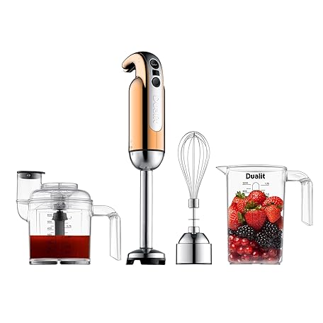 Thông tin sản phẩm Dualit Copper Hand Blender Set | Handheld Stick Blender With Chopping Bowl, Whisk & 1L Measuring Jug | 700W Polished With Turbo Speed | For Soup, Smoothies, Puree, Dip, Baby Food & Chopped Vegetables