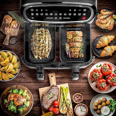 Sản phẩm Duronic Twin Air Fryer AF24 10L Digital Large Air Fryer Dual Basket Visual Window 2400W Sync Cook Sync Finish 10 Presets Quick Cook Dishwasher Safe Oil-Free Healthy Cooking Family Size Multi Cooker đang được bán với giá ưu đãi là $143.5748 tại nước Anh.