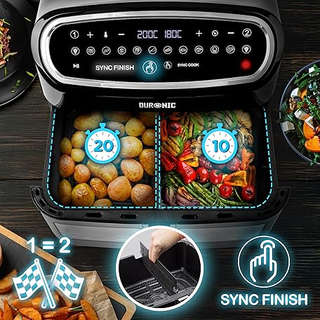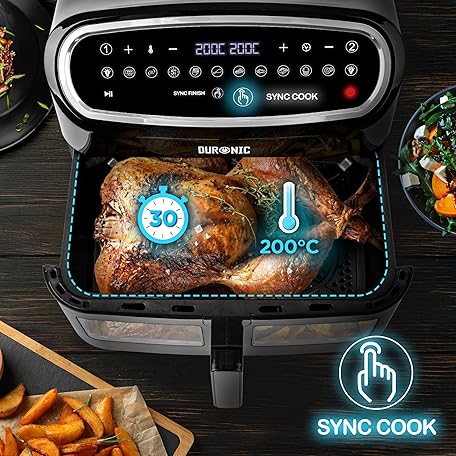 Sản phẩm Duronic XXL Digital Air Fryer AF14 BK 10L Family Size Air Fryers Double Drawer 10in1 Dual Zone Extra Large AirFryer with window for Family Cooking with Dishwasher Safe Non-Stick Basket Black đang được bán với giá ưu đãi là $143.2805 tại nước Anh.
