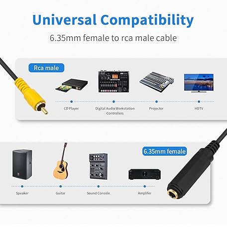 Thông tin sản phẩm Duttek 1/4 to RCA Cable, RCA to TS Adapter Cable, 1/4 inch Female Mono TS to RCA Male Interconnect Audio Adapter Conversion Plug Exquisite Pure Copper Splitter Adapter Cable 30cm/12 Inch