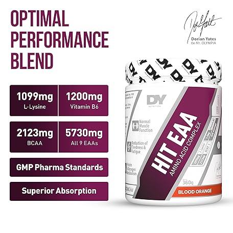 Sản phẩm DY Nutrition HIT EAA Essential Amino Acids Complex with BCAAs, L-Lysine & Vitamin B6 | Muscle Repair & Recovery Supplement Intra Workout Powder, 27 Servings, 360g (Blood Orange) đang được bán với giá ưu đãi là $27.8386 tại nước Anh.