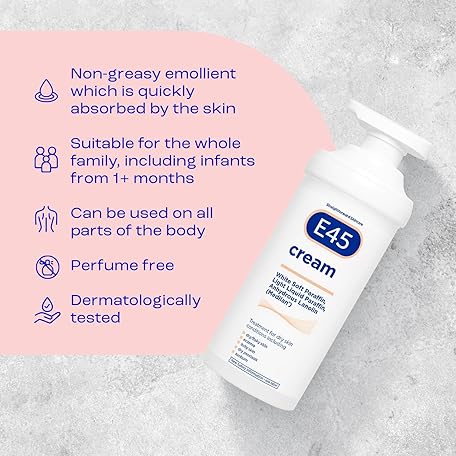 Thông tin sản phẩm E45 Cream 500 g – E45 Cream for Dry, Irritated Skin – Moisturiser to Soothe Dry & Sensitive Skin - Dermatologically Tested Eczema Dermatitis Cream – Non-Greasy Body Face Hand Cream – Clinically Proven