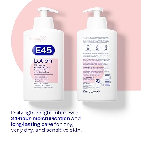 Thông tin sản phẩm E45 Moisturising Lotion 500 ml for Dry & Sensitive Skin - Long-Lasting Hydration Protect from Dryness, Reduce Redness - Dermatological Body Moisturiser Lotion - Body Lotion - Daily Moisturiser