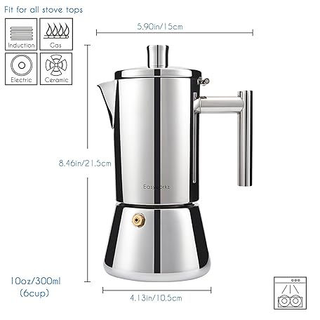 Sản phẩm Easyworkz Diego Stovetop Espresso Maker Stainless Steel Italian Coffee Machine Maker 6cup 300ml Induction Moka Pot đang được bán với giá ưu đãi là $53.0067 tại nước Anh.