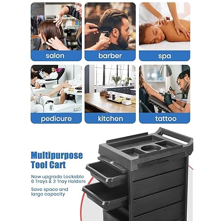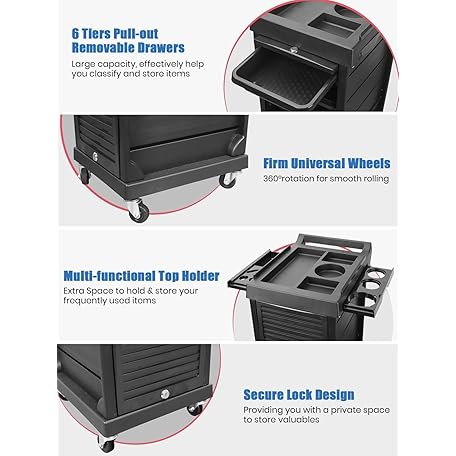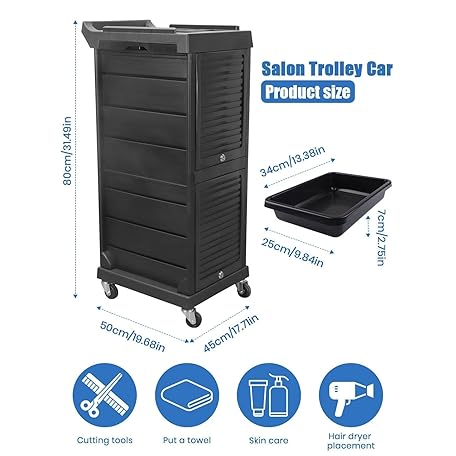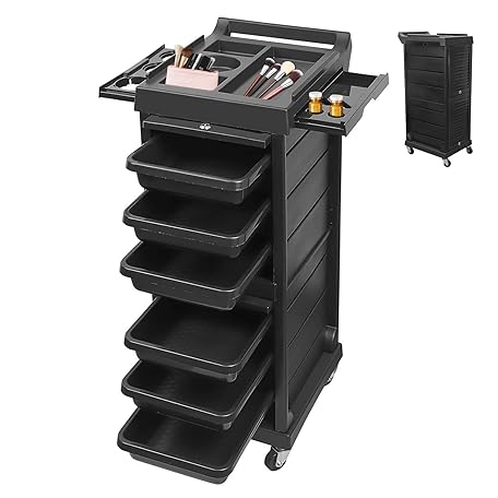 Thông tin sản phẩm EBANKU Salon Beauty Rolling Trolley Cart, Black Hair Salon Storage Cabinet Barber Organizer Tool Multi Drawers Rolling Cart Free Standing Furniture with 4 Universal Wheels Hair Salon Supplies