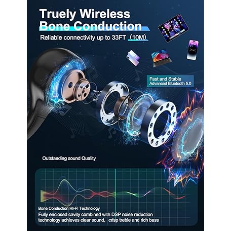 Thông tin sản phẩm Echaar Bluetooth Headphones, Bone conduction headphones 5.3, Open-Ear Sports Earphones with Mic, Waterproof Wireless headset for Workout, Running, Gym, Hiking, Driving, Cycling