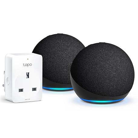 Echo Dot (5th generation) | Charcoal, 2-pack + Tapo P110M Smart Plug with Energy Monitoring, Works with Alexa - Smart Home Starter Kit