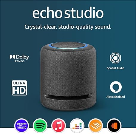 Sản phẩm Echo Studio (Newest gen) | Our best-sounding Wi-Fi and Bluetooth smart speaker ever | Dolby Atmos, spatial audio, smart home hub and Alexa | Charcoal đang được bán với giá ưu đãi là $325.5176 tại nước Anh.