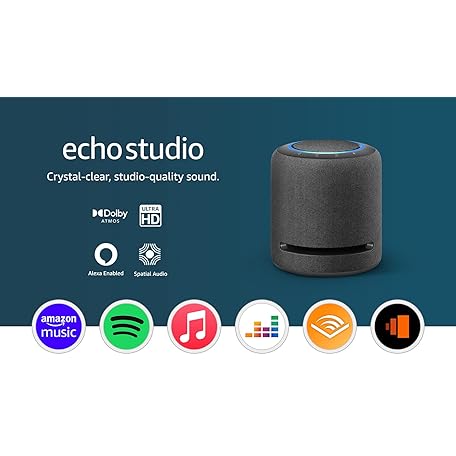 Thông tin sản phẩm Echo Studio (Newest gen) | Our best-sounding Wi-Fi and Bluetooth smart speaker ever | Dolby Atmos, spatial audio, smart home hub and Alexa | Charcoal