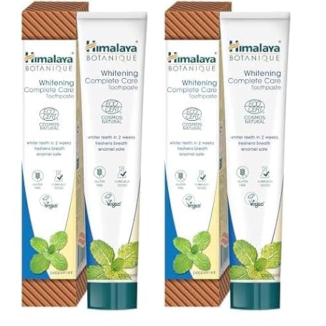 Ecocert Cosmos Natural Certified Himalaya Botanique Whitening Complete Care Toothpaste with Organic Actives, Peppermint Flavor | Whiter Teeth and Fresh Breath | Fluoride Free & Gluten Free, 75 ml