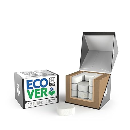 Ecover Power Dishwasher Tablets, All-In-One Dishwasher Salt & Rinse Aid, Power Cleaning, Mandarin and Lemongrass Scent, Pack of 1, 24 Tablets
