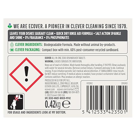 Sản phẩm Ecover Zero Dishwasher Tablets, Dishwasher Salt & Rinse Aid Cleaning, Biodegradable Formula, Zero Fragrance, Pack of 1, 24 Tablets đang được bán với giá ưu đãi là $10.8128 tại nước Anh.