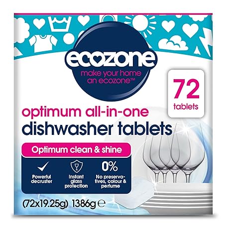 Ecozone Optimum All In One Dishwasher Tablets Bulk Buy x 72, Dishwashing Tablets with Salt, Rinse Aid & Extra Dry Effect, Powerful Degreaser & Dish Washer Tabs, Eco Conscious & Gentle on Appliances