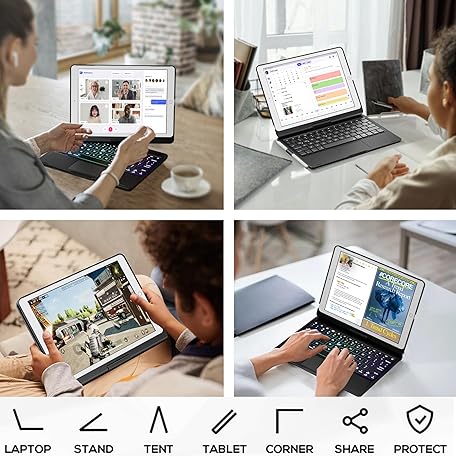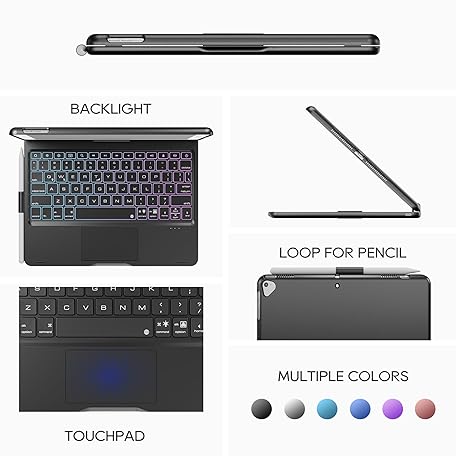 Thông tin sản phẩm edaiser Swivel Keyboard Case for iPad 10.2 inch 9th 8th 7th, iPad Air 3rd and iPad Pro 10.5 2nd Generation; Rotatable Cover with Pencil Holder, Multi-Touch Trackpad, RGB Backlit, Black
