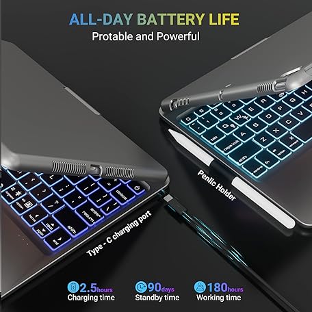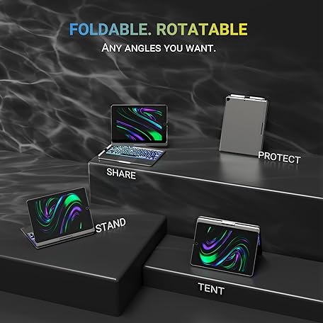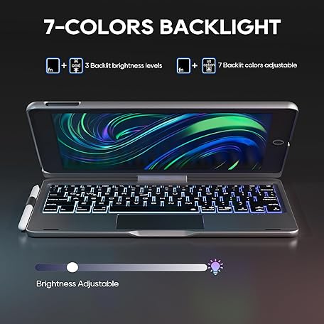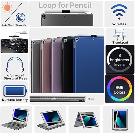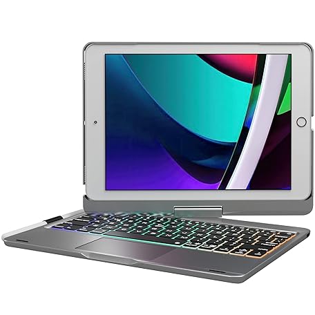 edaiser Swivel Keyboard Case for iPad 10.2 inch 9th 8th 7th, iPad Air 3rd and iPad Pro 10.5 2nd Generation; Wireless Rotatable Cover, Pencil Holder, Smart Trackpad, RGB Backlit, Space Gray
