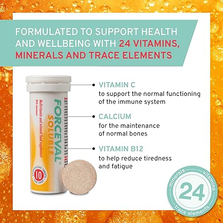 Thương hiệu Forceval Soluble là cái tên nổi tiếng được rất nhiều khách hàng trên thế giới chọn lựa. Với kiểu dáng đẹp mắt, sang trọng, sản phẩm Effervescent Multivitamin Tablets, 24 Key Vitamins and Minerals Including Vitamin C, B and D, Iron and Zinc. One Effervescent Tablet a Day. for Adults and Children 12+. Pack of 30 là sự lựa chọn hoàn hảo nếu bạn đang tìm mua một món cho riêng mình.