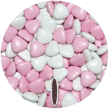 EinsSein 1kg Sugared Chocolate Hearts Dragees mix med white-pink glossy heart chocolates sweets dragées dragees wedding mini favours guests shapes chocolate table hearts party baptism sweet sugared