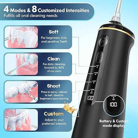 Sản phẩm Electric Flosser for Teeth Cordless Picks Tooth Flosser Electric Oral Irrigator Portable Cleaner UK with 8 DIY Modes 7 Jets 300ml Tank Braces Flossers Rechargeable (Black) đang được bán với giá ưu đãi là $31.3811 tại nước Anh.