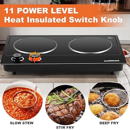 Thông tin sản phẩm Electric Hob, CUSIMAX Double Hot Plate for Cooking, Electric Ceramic Hot Plate, Portable Double Infrared Cooktop with Dual Temperature Control, 2400W Countertop Cooktop, Heat-Up in Seconds, Black