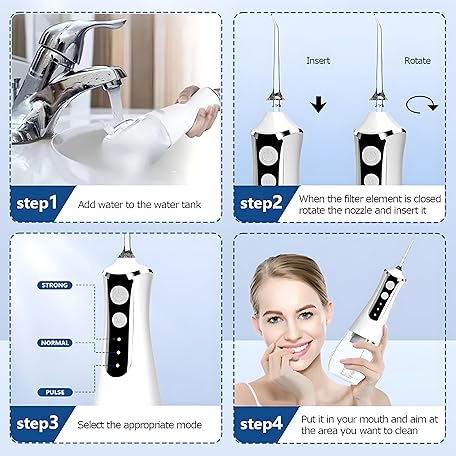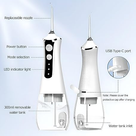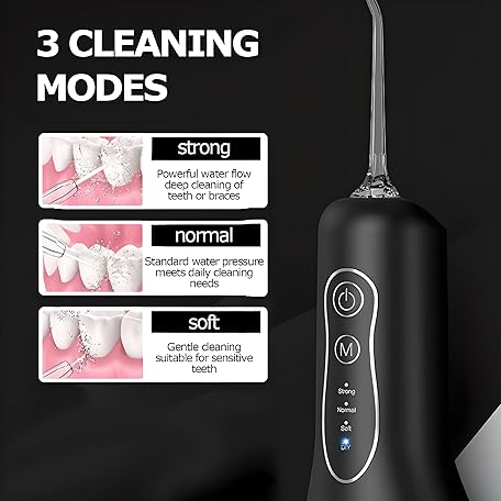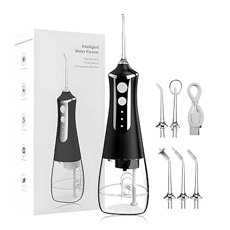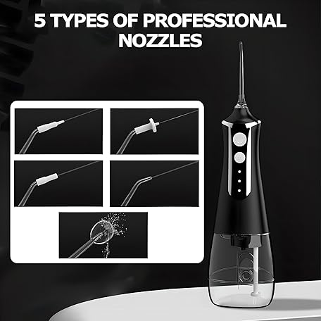 Thông tin sản phẩm Electric Water Flosser, 3 Modes Cordless Oral Irrigator with 5 Jet 300 Ml Water Tank, Usb Rechargeable for Tavel and Home Use Cordless Advanced Water Flosser black