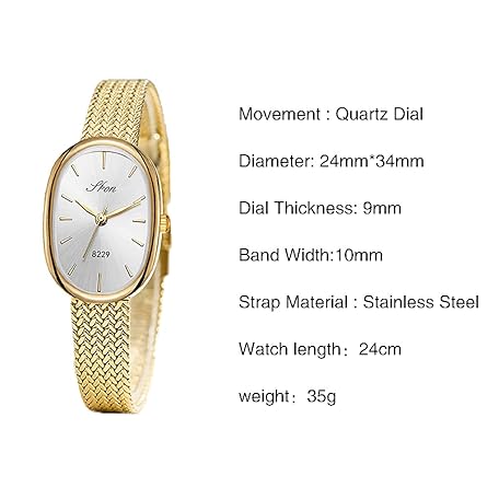 Thông tin sản phẩm Elegant Watches for Women Oval Quartz Watch Ultra-Thin Dial, Stainless Steel Mesh Band, Fashion Gold Wristwatch, Easy Reader Ladies Dress Watch