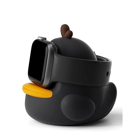 ELETIUO Charger Stand Compatible with Apple Watch Series 49/46/45/44/42/41/40/38mm iWatch Ultra2/Ultra/10/9/8/SE2/7/6/SE/5/4/3/2/1,Cute Duck Silicone Dock,Supports Night Stand Mode,Black