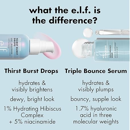 Thương hiệu e.l.f. là cái tên nổi tiếng được rất nhiều khách hàng trên thế giới chọn lựa. Với kiểu dáng đẹp mắt, sang trọng, sản phẩm e.l.f. Holy Hydration! Thirst Burst Drops, Gel Serum Drops, For a Dewy, Plump Complexion, Non-Greasy Feel, With Hyaluronic Acid & 5% Niacinamide, Vegan & Cruelty-Free  là sự lựa chọn hoàn hảo nếu bạn đang tìm mua một món  cho riêng mình.