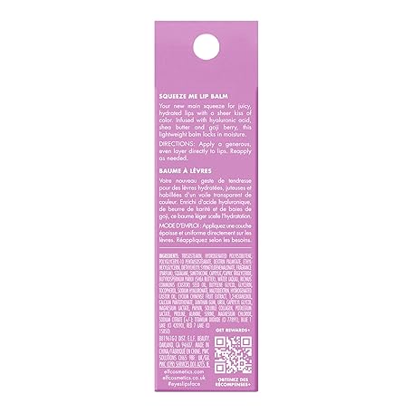 Thông tin sản phẩm e.l.f. Squeeze Me Lip Balm, Moisturising Lip Balm For A Sheer Tint Of Colour, Infused With Hyaluronic Acid, Vegan & Cruelty-free, Grape