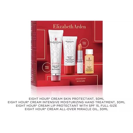 Thông tin sản phẩm Elizabeth Arden Eight Hour Cream Gift Set | Legendary 4-Piece Skincare Collection | Skin Protectant 50ml, Hand Cream 30ml, Miracle Oil 30ml & Lip Protectant SPF15
