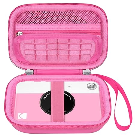 Elonbo Carrying Case for KODAK Printomatic Full-Color Instant Print Digital Camera, Portable Mini Photo Printer Hard Travel Bag, Picture Printer Storage Holder, Mesh Bag Fits Photo Paper Cable, Pink