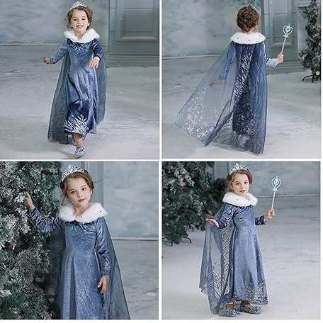 Thông tin sản phẩm Elsa Anna Princess Dress - Elsa & Anna Costume for Girls, Winter Snow Queen Fancy Dress for Halloween, Christmas, Birthday Parties