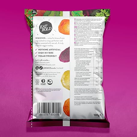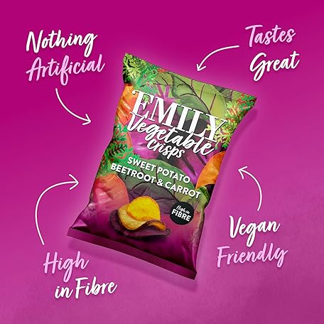 Sản phẩm EMILY Veg Crisps Rainbow Roots | All Natural Vegetable Crisps | No Added Sugar, High Fibre | Vegan Friendly | Perfect for Snacking & Parties | 8 x 100g Share Bags đang được bán với giá ưu đãi là $28.6561 tại nước Anh.