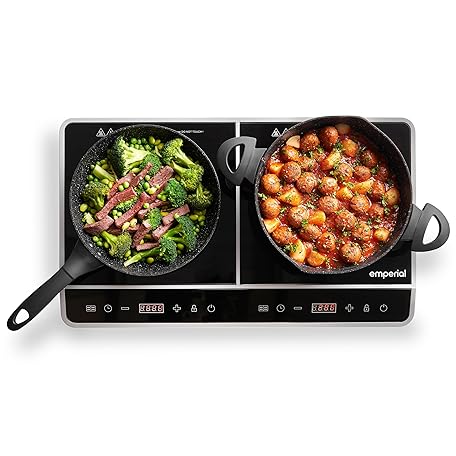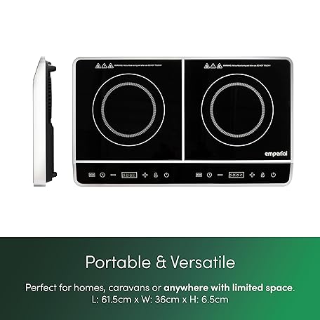 Sản phẩm Emperial Twin Induction Hob - 2800W Portable Double Induction Plate with LED Display, 4-Hour Timer Function, Multi-Heat Settings and Power Levels for Home, Camping, Caravan, Student Living & Cooking đang được bán với giá ưu đãi là $122.0037 tại nước Anh.