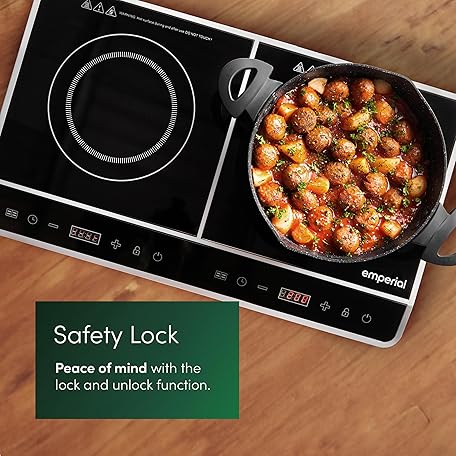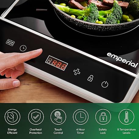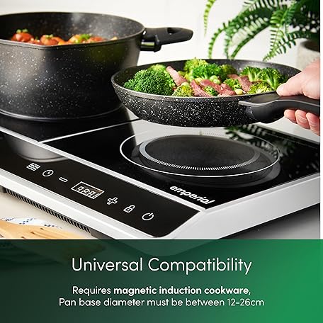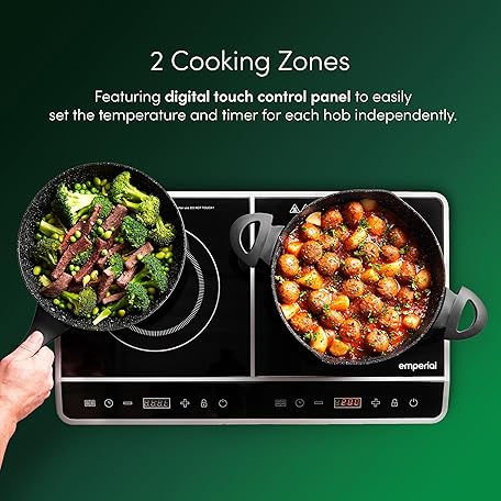 Thông tin sản phẩm Emperial Twin Induction Hob - 2800W Portable Double Induction Plate with LED Display, 4-Hour Timer Function, Multi-Heat Settings and Power Levels for Home, Camping, Caravan, Student Living & Cooking