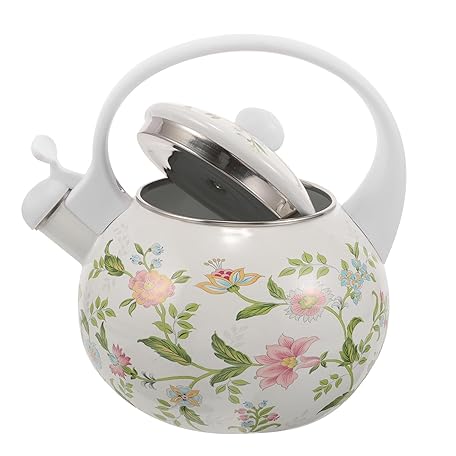 Enamel Whistling Kettle for Stovetop Gas and Induction Cooktops Heat-Resistant Teakettle with Comfortable Handle for Home Office and Party Use